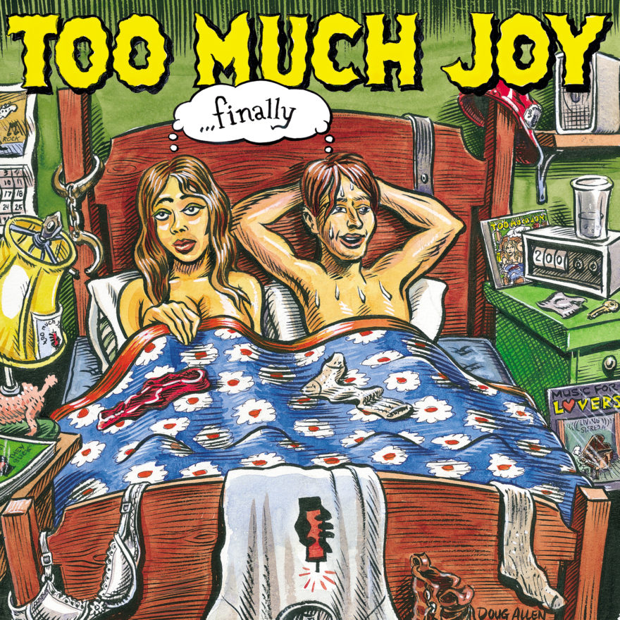 Too Much Joy is/was a punk-pop band of some minor renown, but one with rabid fans. “…Finally,” their first album after a several-year hiatus, featured a Doug Allen illustration of a post-coital couple. The album package had an extra bottom panel which allowed the viewer to pull the blanket down and peek beneath the covers. Taking various sensibilities into consideration, certain retailers were given the option to sell a SFW version with the couple inexplicably clad in underwear — thus making the clean version the collector’s item.