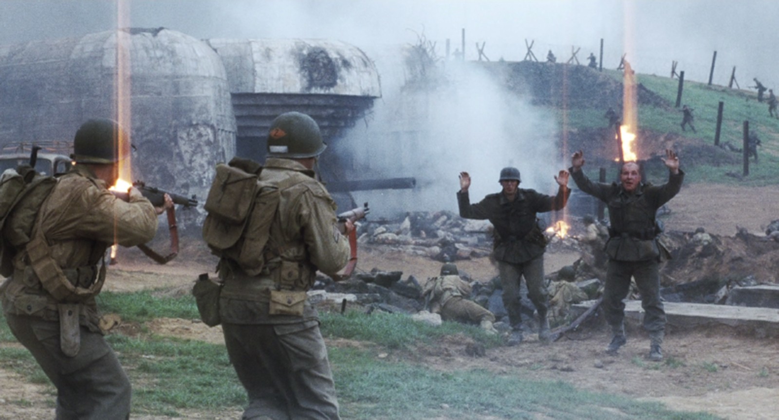 In contrast, here’s one frame from Saving Private Ryan which recreates the D-Day invasion.