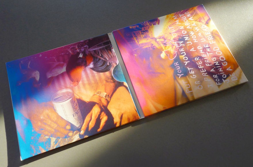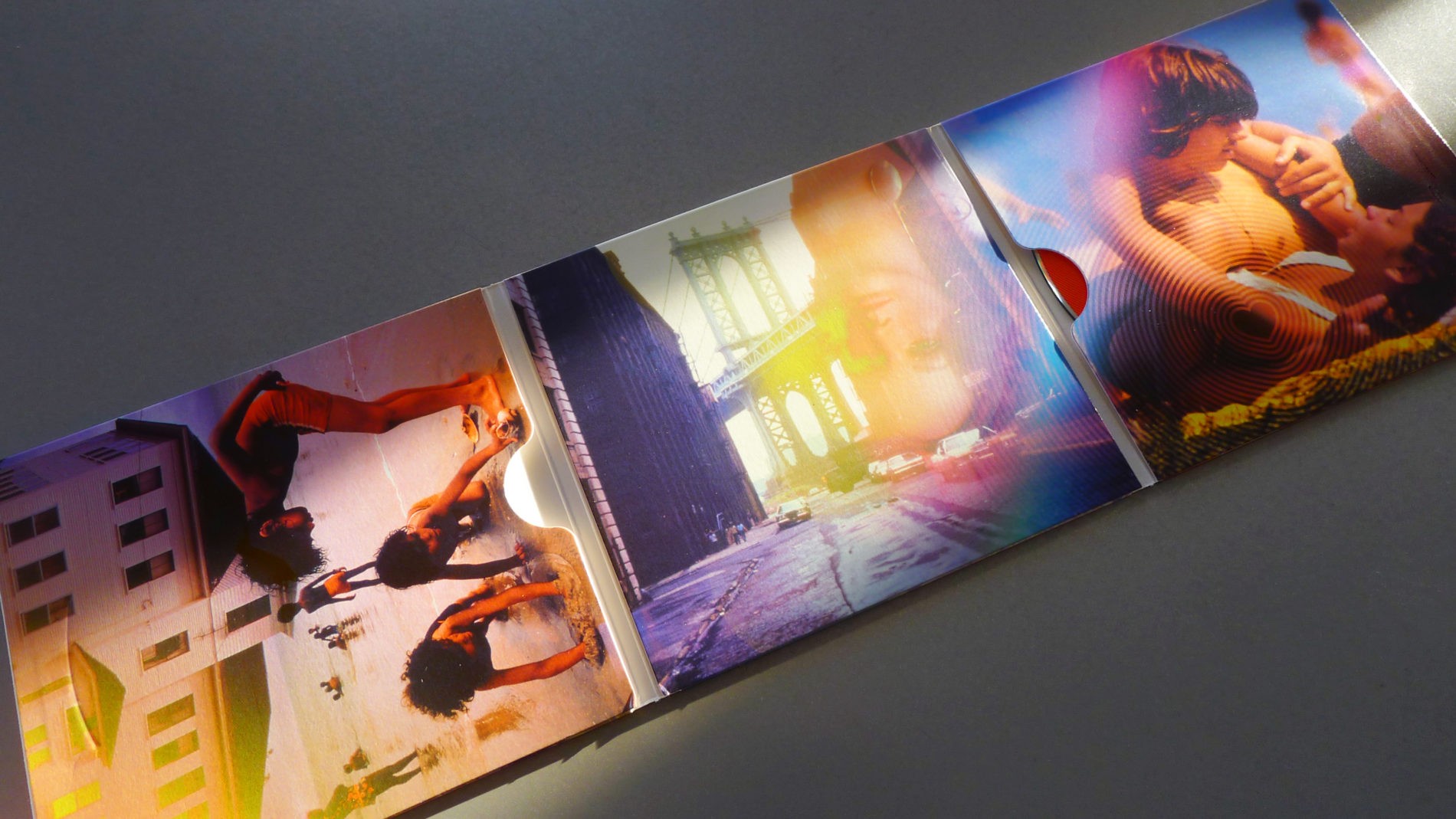 In today’s economic climate, touring musicians now generate more of their income from merchandise sold at live performances. So the goal was to package the recording in as special a manner as possible — to make it a unique physical keepsake. Following the tone of the stage presentation, DOCUMERICA images were collaged and printed with a special ink set derived from Pantone’s proprietary Hexachrome process. This gave an otherworldly quality to the printed packages. Colors were unique, cleaner and more chromatic than their standardized CMYK counterparts.