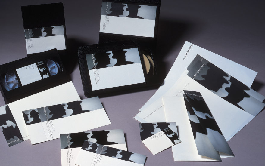 The name Giaronomo is a jump-cut portmanteau of the two founders first names: Giacomo Vieste and Ron Auerbach. Given that they were, at the time, the only trailer production house outside of Los Angeles, and that they worked in film; the identity system was fueled by film noir imagery and the idea of two shady guys from New York.