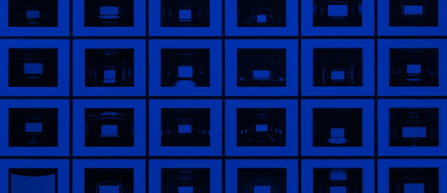 The mark is both an abstract representation of art on display and his first name, written in rectangular forms.