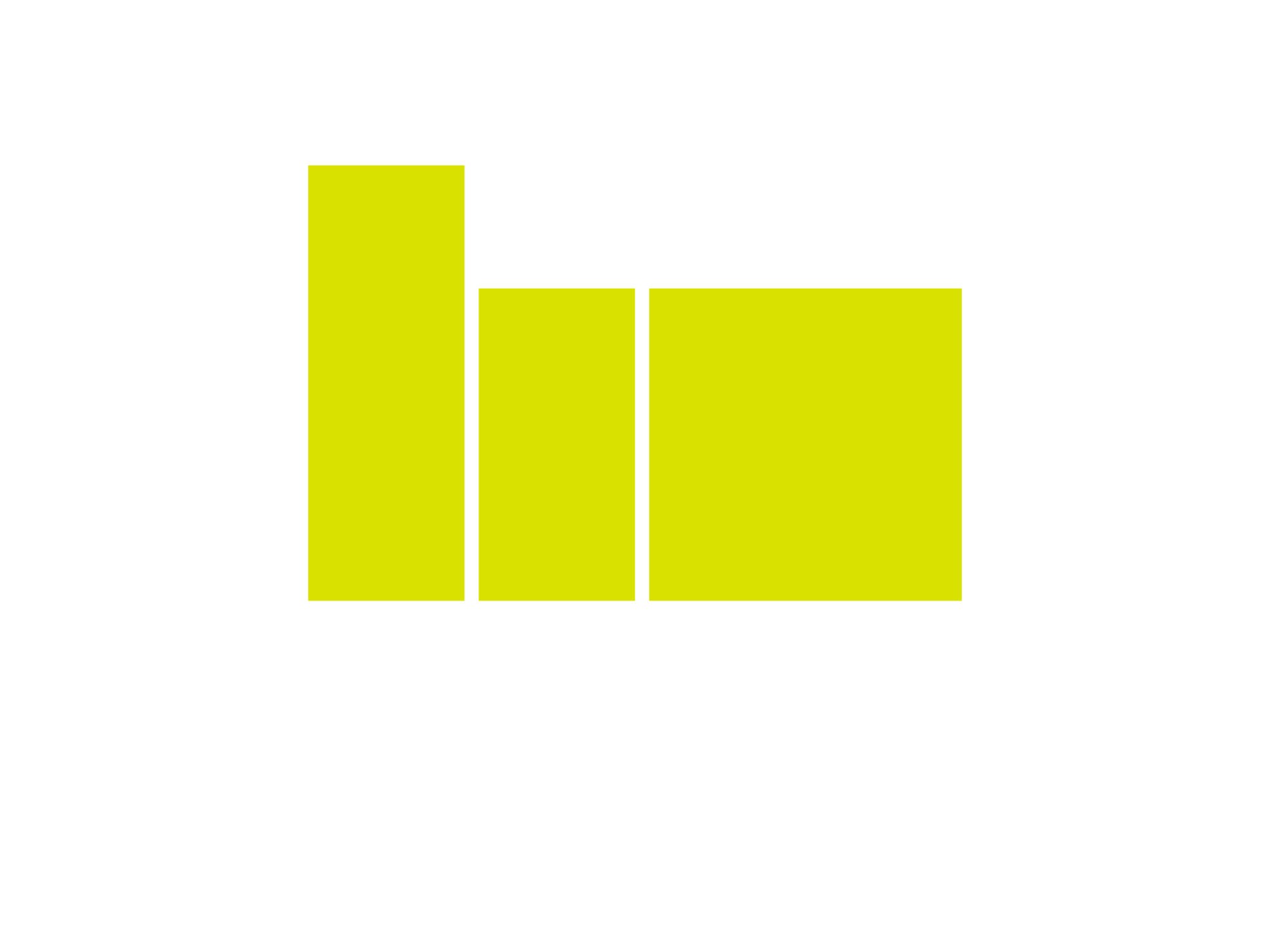 The mark is both an abstract representation of art on display and his first name, written in rectangular forms.