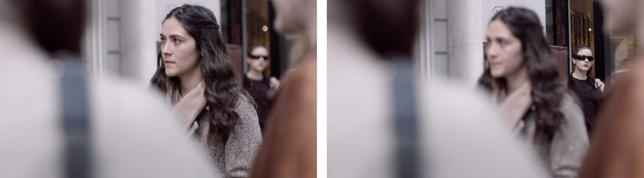 Her weapon of choice is a series of auto-focusing surveillance cameras. As figures move across the frame, the camera shifts focus — which results in a rolling blur effect. This shifting focus, used throughout the film, was the logical inspiration for the titles.